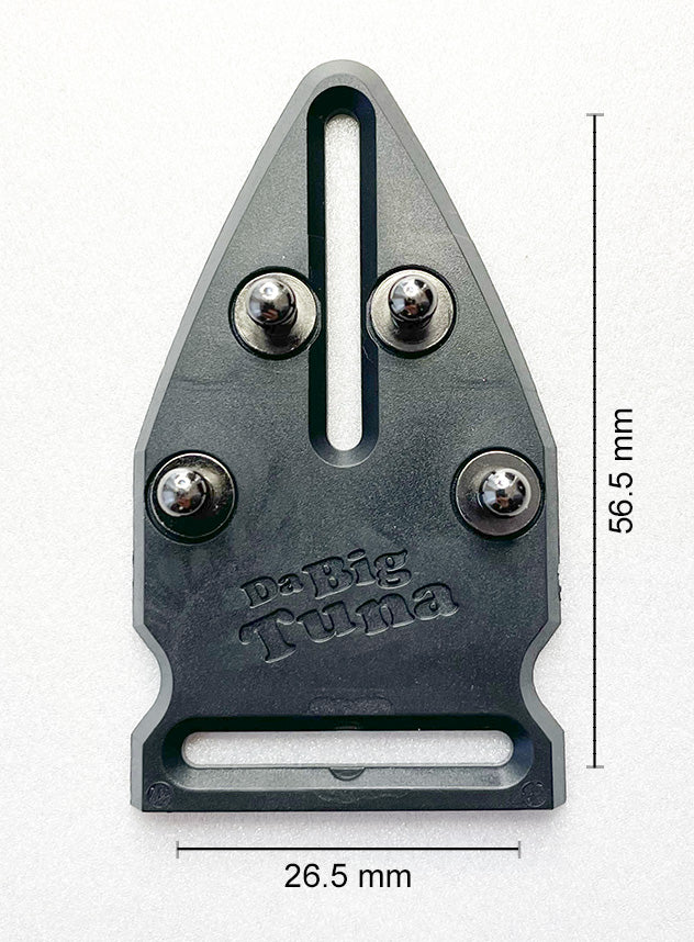 DaBigTuna has been designed to fit a large number of 3X3 headstock guitars, but we are not able to test all models and types. To check, measure the spacing between the screws on your truss rod cover and see if it fits with the spacing outlined below: